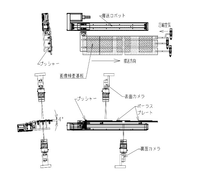 5. ポーラス方式基板浮上搬送装置 FPC、薄板ガラス基板等を浮上状態で搬送 搬送装置に設けられた隙間から、底部カメラにて裏面外観検査 可能 ・表/裏 同時に外観検査が行える ・ストレスフリー搬送 ワーク裏面は搬送装置と非接触移動 軟質ポリエチレン製ポーラス材を使用の為 ワークの傷付き無し | ![]() |